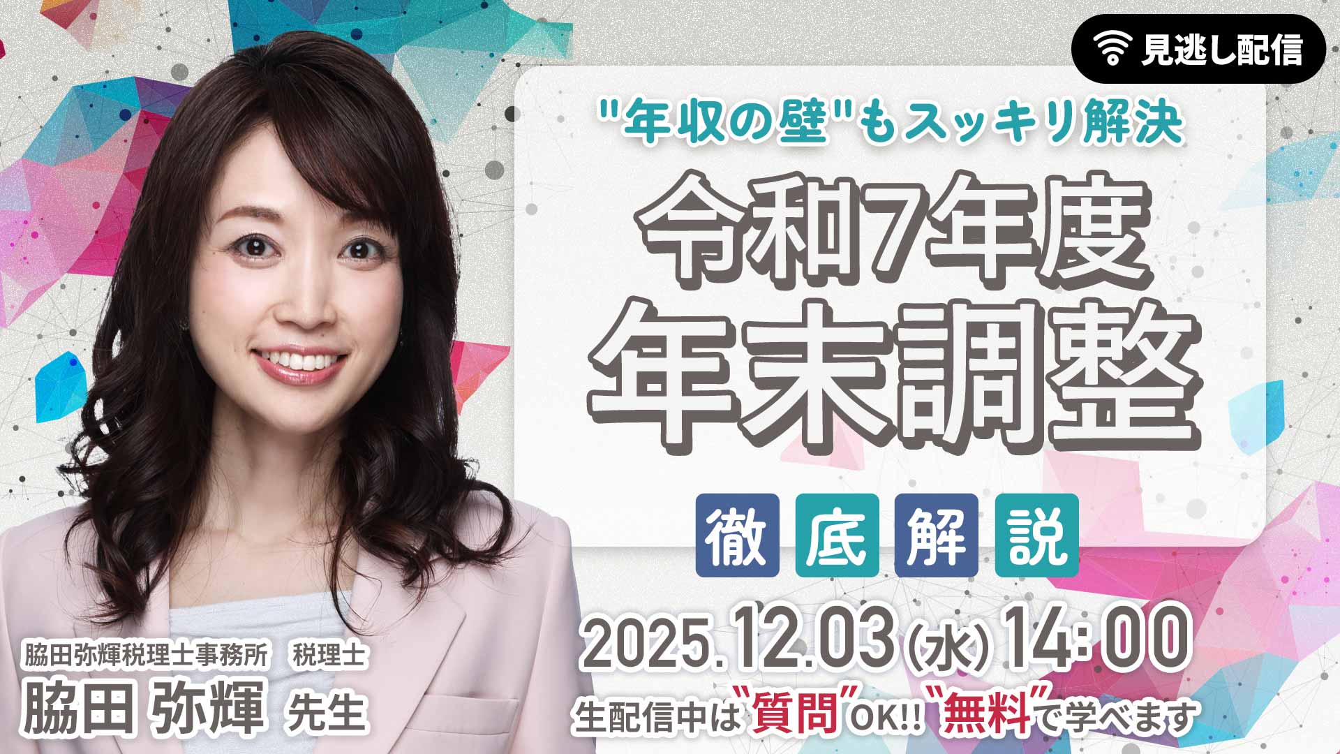 年収の壁もスッキリ解決!令和7年度年末調整を徹底解説Update_2025-12-05 2025年12月3日(水)、脇田弥輝税理士事務所 税理士の 脇田 弥輝(みき) 先生をお招きし、「年収の壁もスッキリ解決!令和7年度年末調整を徹底解説」と題した無料のオンラインセミナーを開催いたしました。 セミナーレポート 令和 …続きを読む |