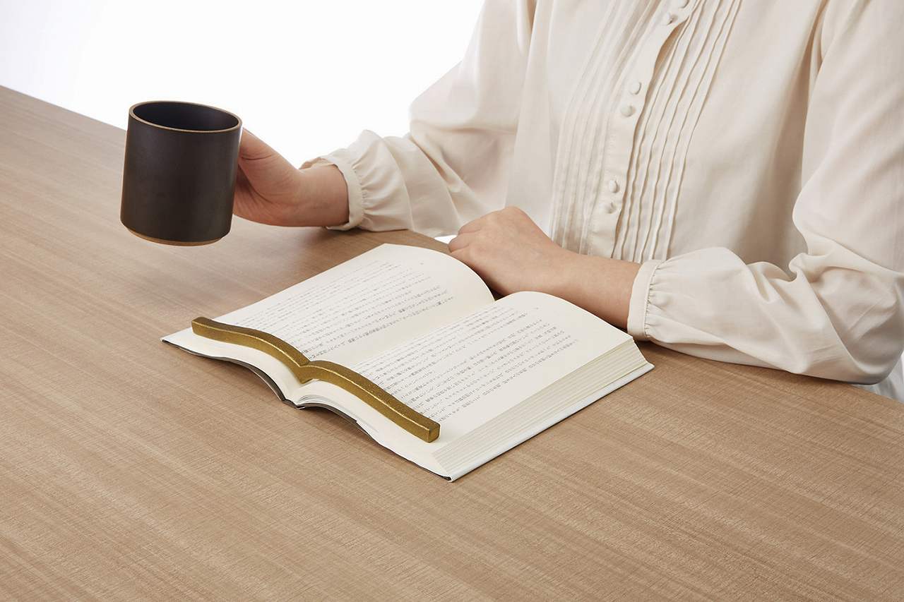 文鎮と聞くと小学生の頃、書道の時間で使ったまっすぐな棒状のものをイメージする方も多いと思いますが、本のカーブに沿った湾曲のデザインがポイント。本の上に置くだけで良いので、手軽にページをめくることができます。適度な重さがあるので、書籍を開いた状態でやさしく安定して保てます。