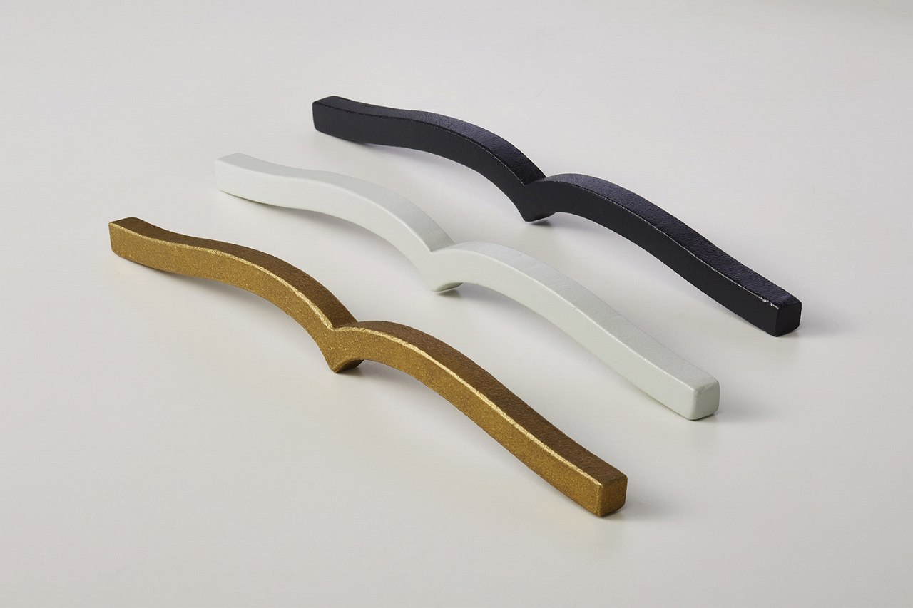 手前から、真鍮製・鉄製グレー・鉄製黒