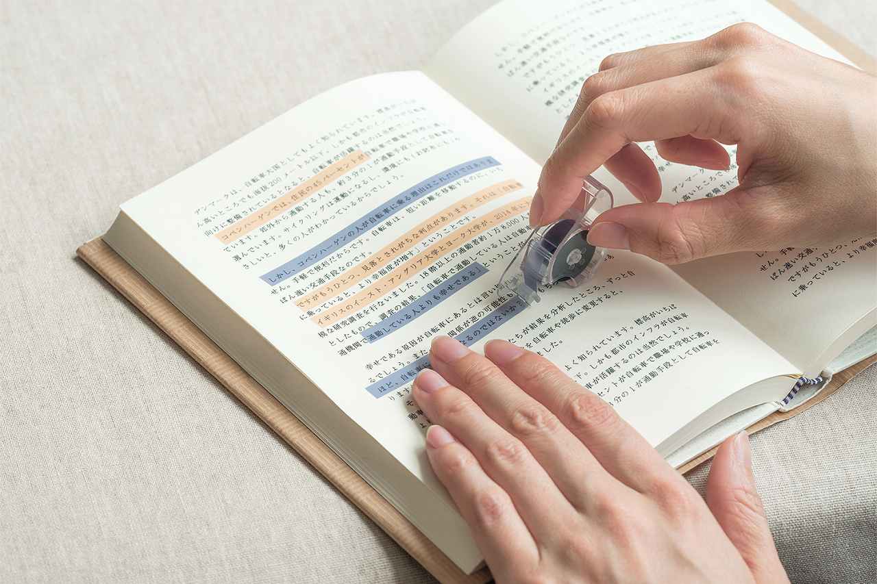 本を読んでいる時に覚えておきたい情報や心に響いた言葉に出会った時、蛍光ペンでマーキングしますよね。蛍光ペンを使うと、裏にインクが移ってしまったり、うまく線が引けず気になってしまうことも…。本を汚してしまうのが嫌な方におすすめなのが、カンミ堂の「はがせるマーカー」です。