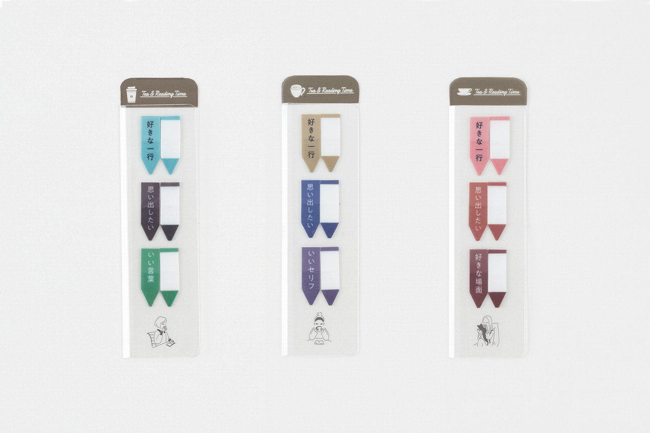 ダイゴーの「ティータイム読書ふせん」は、「しおり」と「ふせん」が一体になった、読書に便利なふせんです。気になった所や読み返したい一文を簡単に目印をつけられます。ふせんは、破れにくく丈夫なフィルムタイプなのがポイント。本から少しはみ出した場所に貼っても剥がれません。