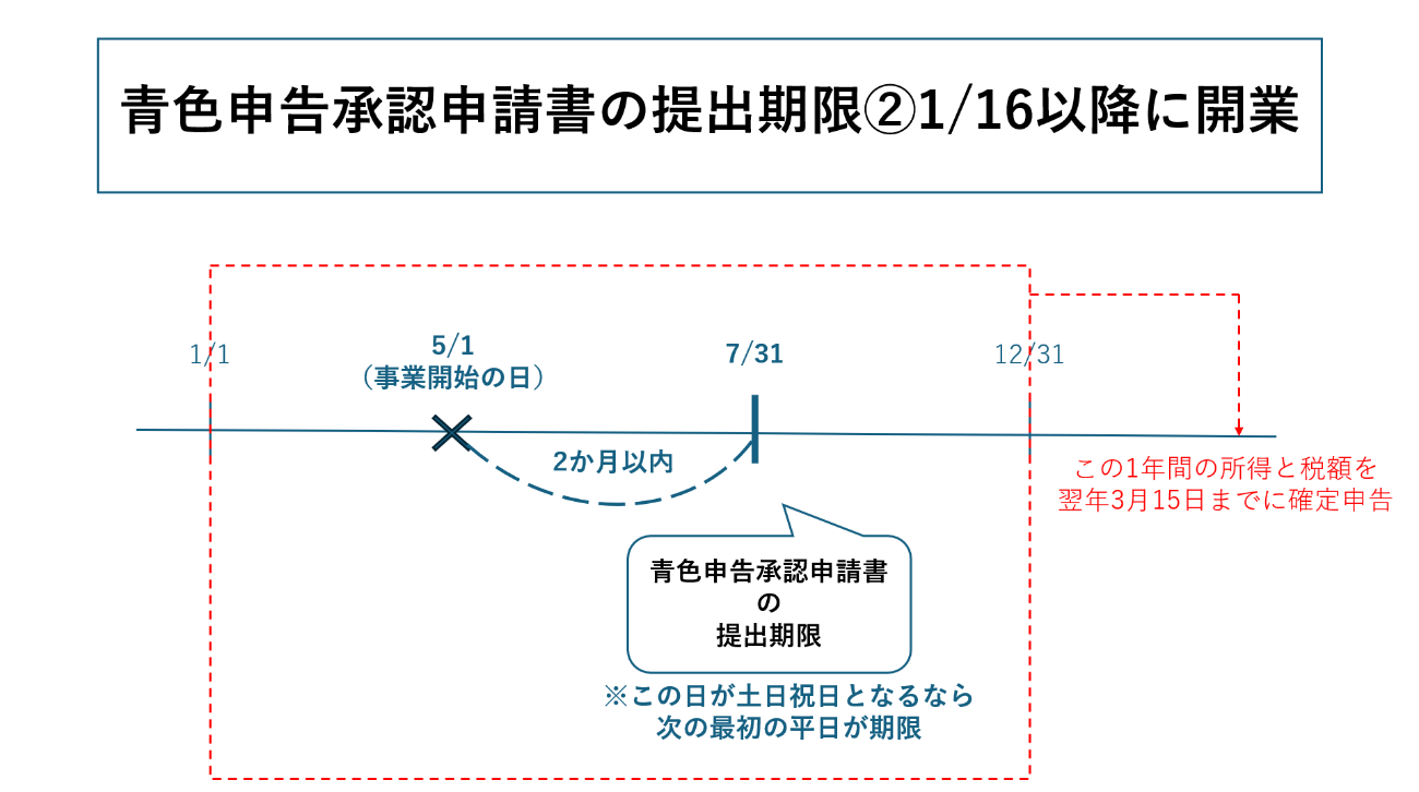 2. その年の1月16日以降に事業を開始:事業開始等の日から2か月以内