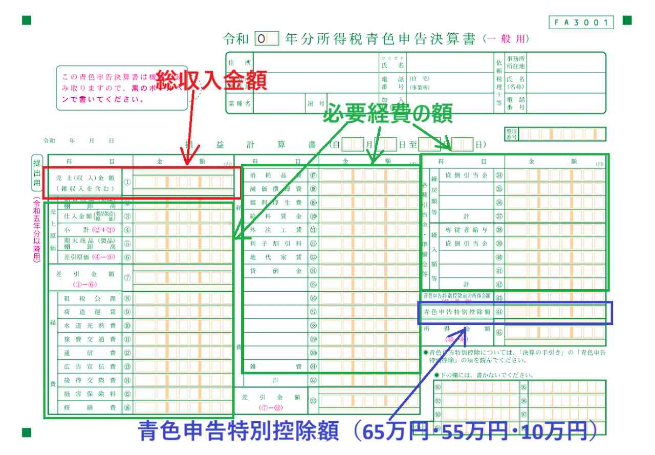なお、青色申告の場合、所得額の計算は次のようになります。